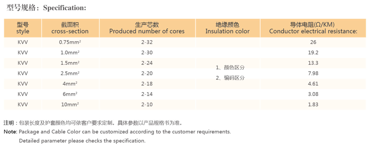 单根导体,绝缘聚氯乙烯,内衬层聚酯带带或无纺布缓冲,护套PVC聚氯乙烯常适用于交流额定电压450/750V以及一下控制,辐射在室内、电缆购管道等固定场所。控制以及信号检测回路。