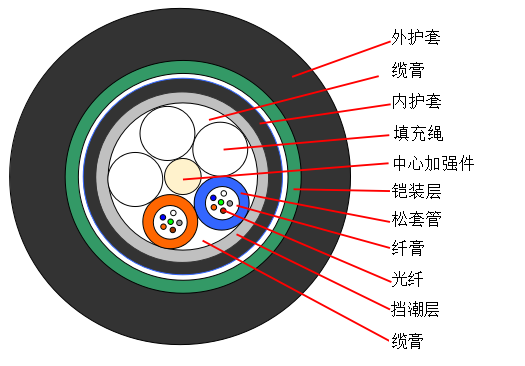 * 松套管内填充特种油膏,对光纤进行关键性保护