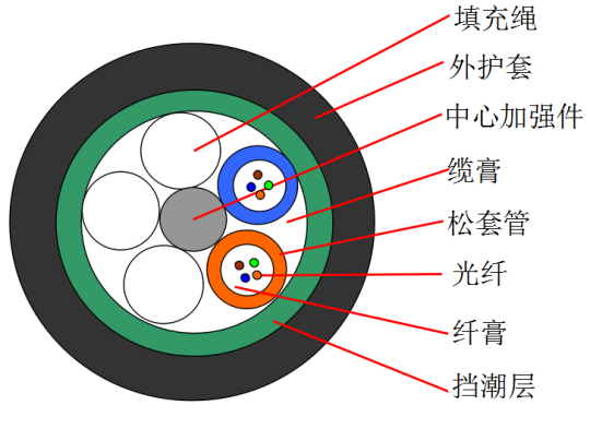 * 松套管内填充特种油膏,对光纤进行关键性保护